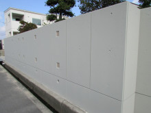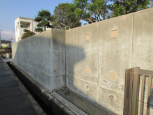 コンクリート打ち放しも出来上がって数年は綺麗なんですが新築時の撥水材が劣化してくると汚れが付着し意匠性が低下致します。