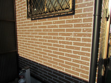 久しぶりのWトーン仕上げが完成しました。ここの仕上げは2Fがモルタル面で水性セラミシリコン仕上げ。1F既存がサイディングのWトーン仕上げでしたから同じように再現させて頂きました。使用塗料はSKクリンマイルドシリコン、目地色(グレー)を2回塗らせて頂き凸部分は短毛ローラーにて同じ材料で2回塗り。