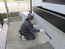そして今日は基礎塗装と並行してE・F棟のフラワーボックスにエポキシ系錆止めを塗布。