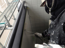 ベランダの内側の壁は一部ローラー施工でシリコン系の塗料を塗ってます。