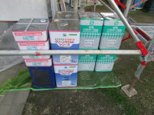 昨今の環境という部分では低臭の水性シリコンが良いですが、弱溶剤シリコンのほうが安定(色落ちしにくい・光沢保持率が良い)していますので塗夢ではクリンマイルドシリコンを使用します。