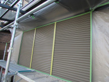 雨戸の塗装は塗料が流れやすいので職方も真剣な表情で塗装しています。