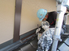 並行して2Fの水切りも丁寧にペーパーでケレンし塗装しています。