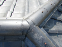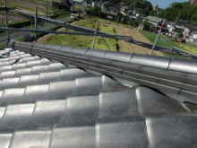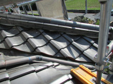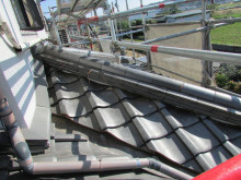 次に訪問したのは倉敷市松島M様邸、瓦の漆喰工事が間もなく終了予定。大屋根は完了し先日から下屋根の棟を解体し漆喰補修をしています。