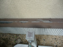 外壁は縦にクラックが入ってます、また梁に使用されていた塩ビが剥がれ落ち下地が出ています。数千万出して建てた家が十数年でこのありさまは見苦しいですよね。