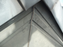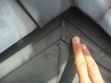一番高い部分の破風板が浮いていました。指で押さえると凹みます↓