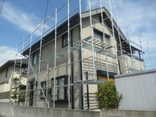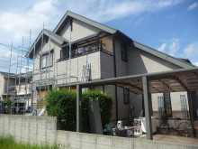 O様邸の外壁提案はお客様が現状の外壁柄を気に入られているので、UVプロテクトクリアーで既存の柄をそのまま生かした工法にしました。