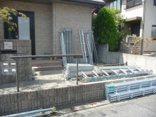 昨日より着工しましたO様邸に訪問してきました。昨日の作業は仮設足場組み。お昼に行ったので足場屋さんは休憩中。