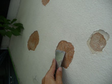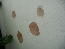 そんななか足場を架けて下地を見てみると剥離が起こってます取れる部分は全て撤去して下地補修。