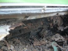 ↑見るもむざんなこの姿・・・ 木材が腐食して手でつまんでもボロボロと剥がれてきます。