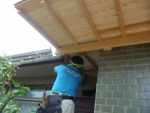 まだ午前中というのに今日も気温がななり上昇しています。この時期の職人さんはホント大変です。飲んだ水分はすぐに汗に変わり体中汗びっしょりで作業しています。