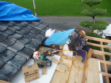 お昼過ぎに高梁から帰りas soon as屋根板金葺き替え工事と玄関リフォーム管理。倉敷市二子O様邸。ここは塗夢事務所から車で5分と近いので管理も楽チン。