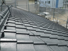 瓦もケレンと高圧洗浄でコケを落としムラなく仕上げてます↓