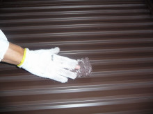 この雨戸塗装は手間が掛る割にはクレームも多いんです。築15年前後であればわりと綺麗に仕上がります。しかし築20年を超えてくると錆や鉄板の腐食が進行しスプレーしても雨戸の表面が凸凹して綺麗に仕上らない場合もあります。