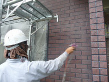 最終仕上げにフッ素樹脂系光触媒K2コートを吹いています。