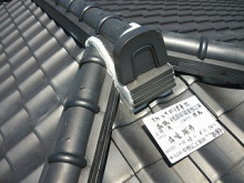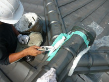 鬼瓦と棟部分をつなげている漆喰が破損し雨が直接入る状態でした↓