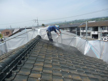 今日は昨日から着工しています倉敷市西阿知のN様邸瓦塗装工事管理に行きました。