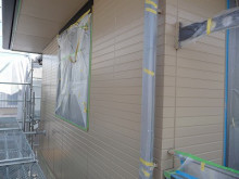 さらに外壁と軒の色が違うので半分を軒色、半分は外壁色で塗装します↓