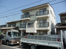 今日は朝からコーポの足場掛け立ち合い。近隣の方々にご迷惑が掛からないよう車両等の駐車位置を指示。仮設足場はお客様にとって財産価値がありませんが作業する側にとっては重要なポイントとなります。三階建てですし足元がふらついているような足場では危なくて良い仕事も出来ません。しっかりした足場を組むよう指示しました。