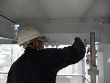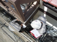昨日梁・柱の水切の設置が終わったので確認に行きました。この水切りを取り付ける事により梁・柱の水が切れるので直接雨水が基材に掛からなくなるので劣化を防止出来ます。。