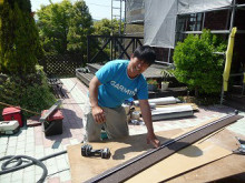 一級建築士のヒロミ棟梁が化粧梁を取り替えてくれてます。