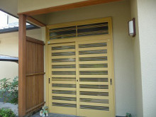 玄関木部のルーバーはキシラデコール(防虫・防腐塗装)施工しました。