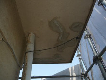 工事前は屋上からの漏水が激しかったため軒のモルタルが剥落してました。これは樹脂セメントで補修した後の状況です。