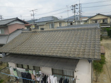 築40年が経過しており屋根・外壁・木部に劣化が進行しています。僕が塗装見習い工の頃はこのような借家は全て脚立とバタ板で塗装していました。今では労働安全衛生法上2m以上の作業をする場合は仮設足場を設置しないといけないんですよね。