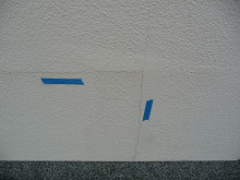 ↓塀の浮箇所にテープを貼り職方に指示しました。