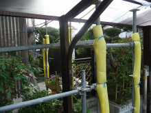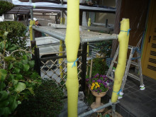 夕方から庄地区のY様邸の足場の点検に行きました。お客様が足場にぶつかってケガをしないように導線部分には養生をさせて頂きました。