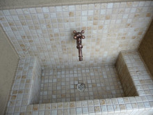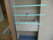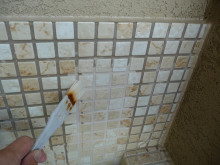 今日は朝礼にも参加せず現場直行。Kホーム様の展示場の外部手洗いの目地部分の漏水処理。