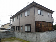 偶然にも2棟とも外壁は窯業系凹凸サイディング。塗り替え仕様は弱溶剤系弾性シリコン塗装+K2コート(フッ素樹脂系光触媒) 凸部色変えでWトーン2色仕上げ。