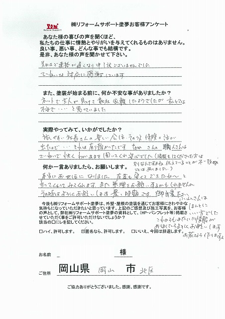 ていねいな対応に感謝しています。塗装が始まる前に何か不安なことがありましたか?