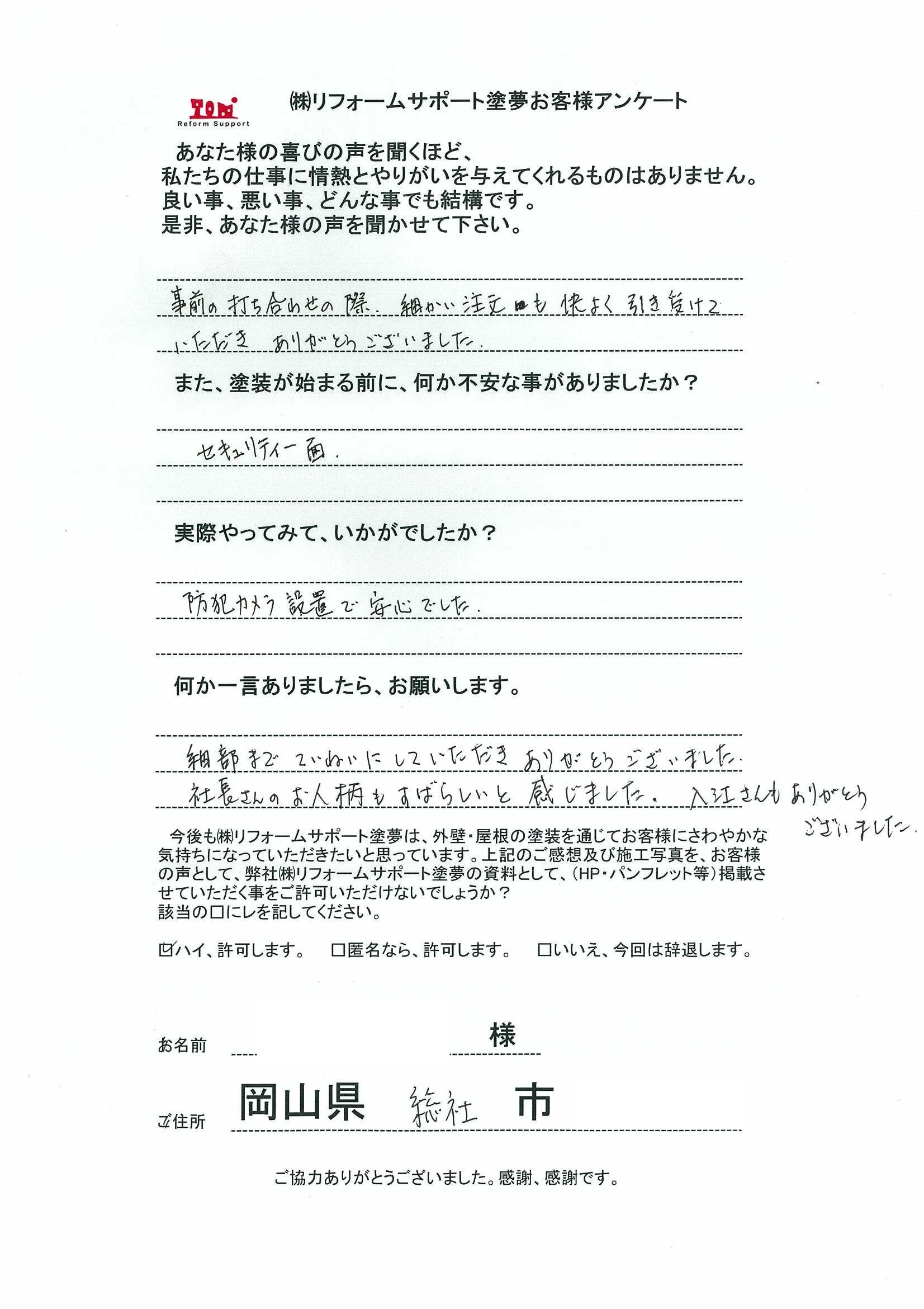 総社市でフッ素塗料を使用し屋根の塗り替えをされたお客様の声
