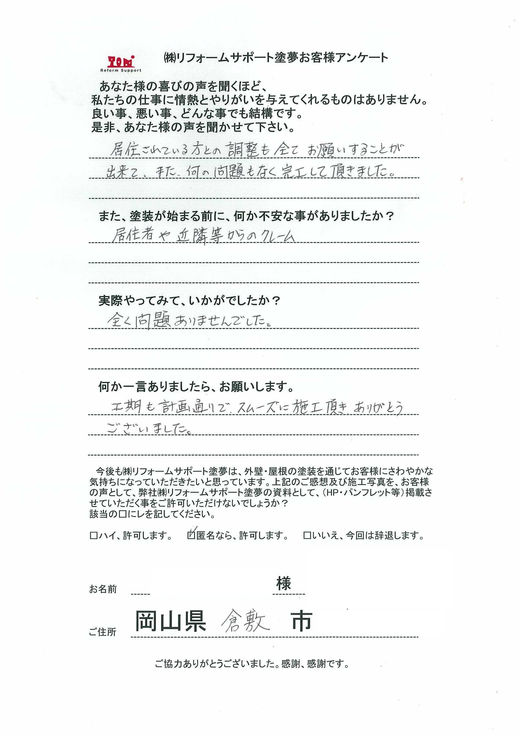 倉敷市水島でアパートの外壁塗装をされたお客様の声