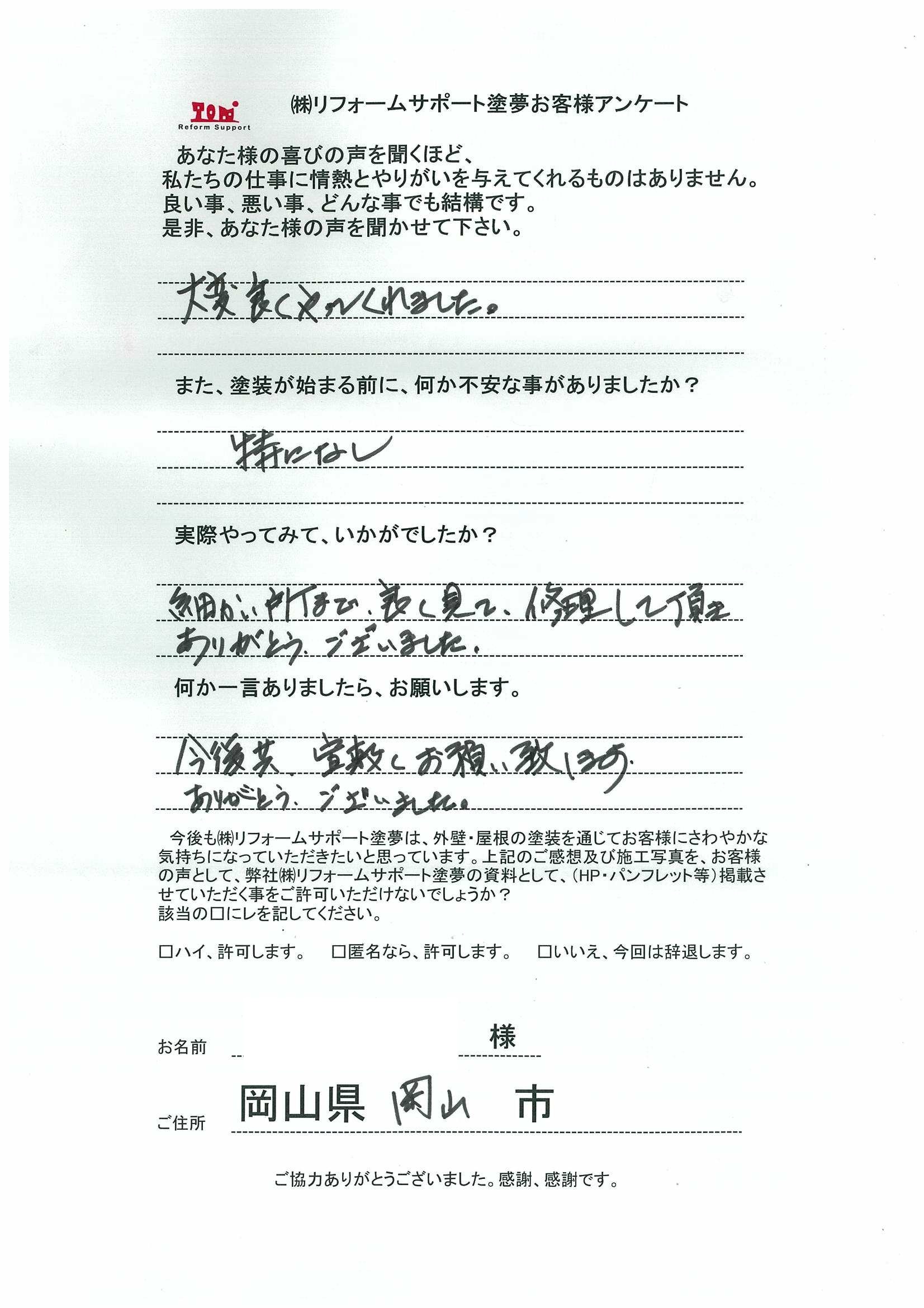 岡山市で3階建ての屋根と外壁の住宅塗装されたお客様の声