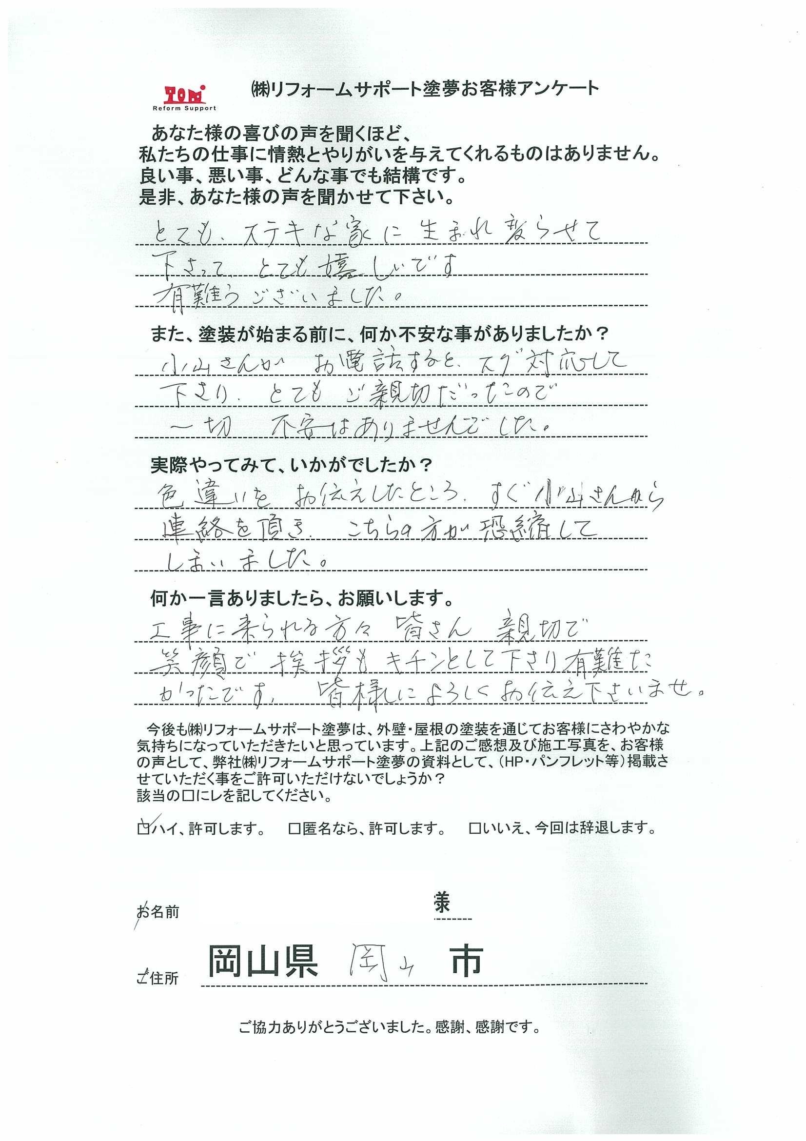 岡山市 屋根と外壁をアウトレットプランで塗装されたお客様の声
