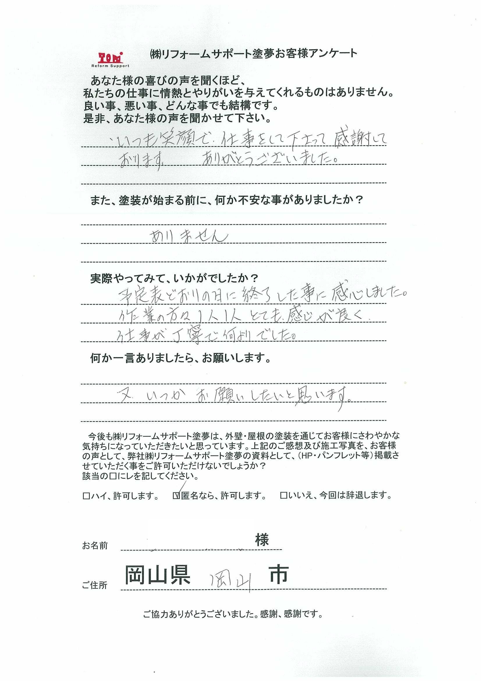 岡山市北区で外壁をフッ素に塗装したお客様の声