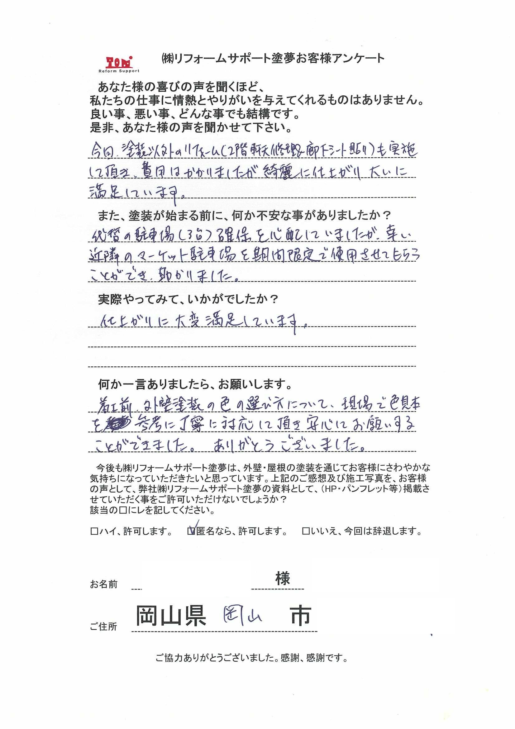 岡山市でアパート塗装と長尺シート張り工事をされたお客様の声