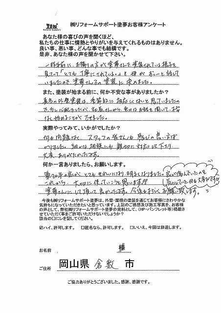 倉敷市で外壁をフッ素でダブルトーン塗装されたお客様の声