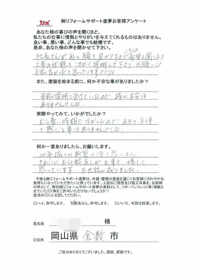 倉敷市庄新町 Y様の声