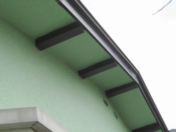 過去に数回塗装されているとの事ですが、外壁はさほど問題ありませんが、破風・鼻隠し、ひさし鉄板等はかなり劣化が進行しています。また母屋木の木部は腐食が進行しており、このまま放置した状態だとシロアリ被害を受ける場合があります。母屋木は鋼板を巻くカバー工法のご提案をいたしました。