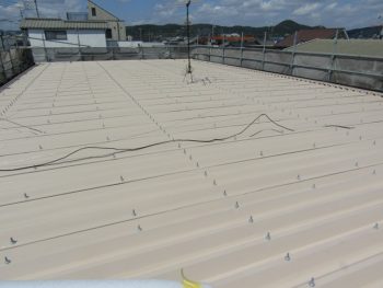 金属の折板屋根に一部穴が空き、雨漏りしていました。折板を一部張り替え工事をご提案いたしました。