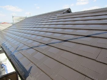 屋根はセメント瓦です。屋根の方が劣化のスピードが早いですので耐久性の高い無機塗料を使い、長持ちする外壁に合うよう、屋根も長持ちするようなプランをご提案し、喜んでいただくことができました。