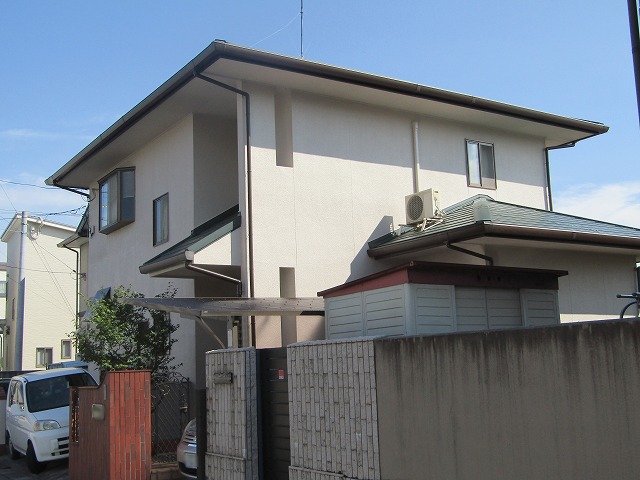 屋根は劣化して、状態が良くありませんでした。塗装することもできましたが、お客様から今後まだ長く住む予定だと伺い、瓦を葺き替えるか、カバー工法が良いと思い、ご提案させていただきました。カバー工法を選ばれ、屋根も外壁もまるで新築のような姿を取り戻されました。
