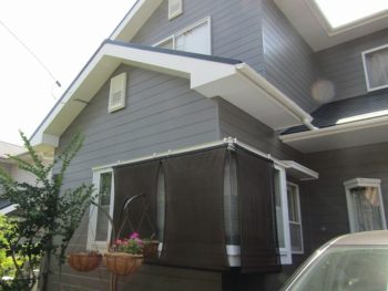 外壁も屋根も劣化し、塗り替えの時期に達していました。屋根は長期耐久性の見込める無機塗料を使い、外壁には安定のシリコン塗料を使用しました。外壁はご希望の色がありましたのでアウトレット塗料でできました。シーリングは撤去し打ち替えしました。新築のような仕上がりになりました。