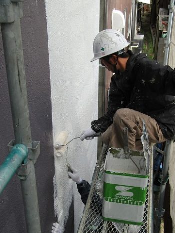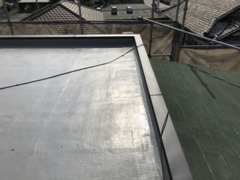 屋上から雨漏りが見られましたので、10年保障のFRP防水工事をいたしました。伸縮性のある塗料レナエクセレントを中塗りに使用し雨水の侵入を防ぎます。