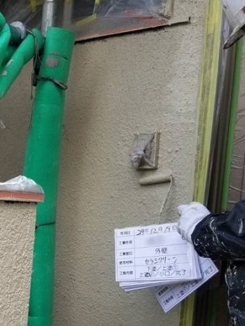 外壁はモルタル壁でひびが多くありました。補修して塗ります。築年数が長いお家ですが、的確なメンテナンスで長く住むことができます。下地処理を丁寧に作業し塗り替えいたしました。