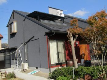 屋根は塗膜が剥離していて危険な状態でした。長持ちするガルバリウムの屋根にカバー工法でご提案させていただきました。外壁はひびが深く補修が必用です。塗膜は厚いものをご提案させていただきました。