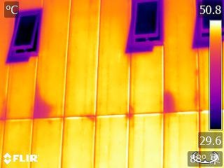 漏水の調査はサーモグラフィを使って調べました。雨漏りは屋根や屋上からと思われがちですが、外壁から侵入することもあります。漏水は1箇所でないことももちろんありますので、サーモグラフィを使い確実に防水施工します。